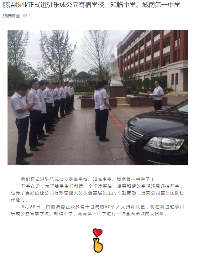 麗潔物業正式進駐樂成公立寄宿學校、知臨中學、城南第一中學